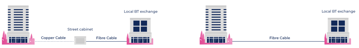 Fibre to the Cabinet (FTTC) delivers Fibre from the cabinet to the nearest Ethernet exchange. It offers speeds of up to 80MB downstream. |
