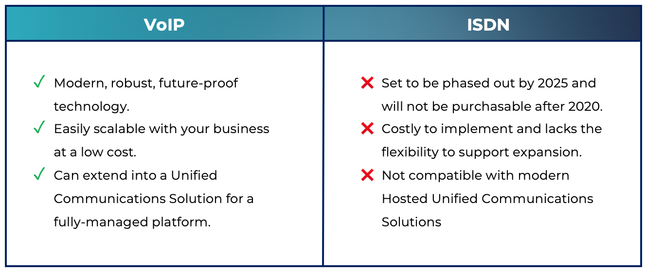 So which is best for you? Even in 2019, it’s a difficult question to answer, as there are a number of factors that affect how each will work for you. There are important points to consider that will help inform your decision as ISDN approaches end-of-life.